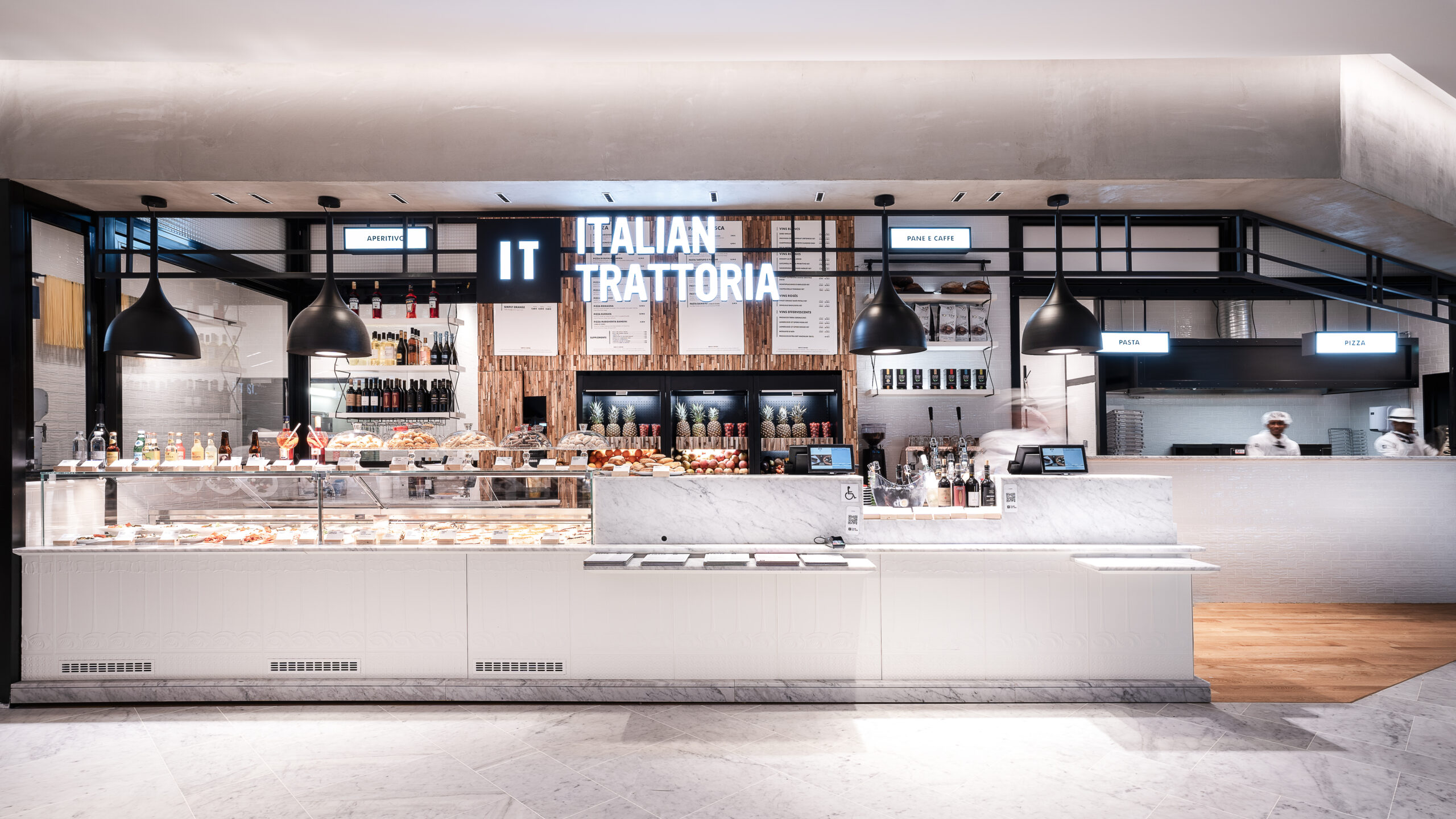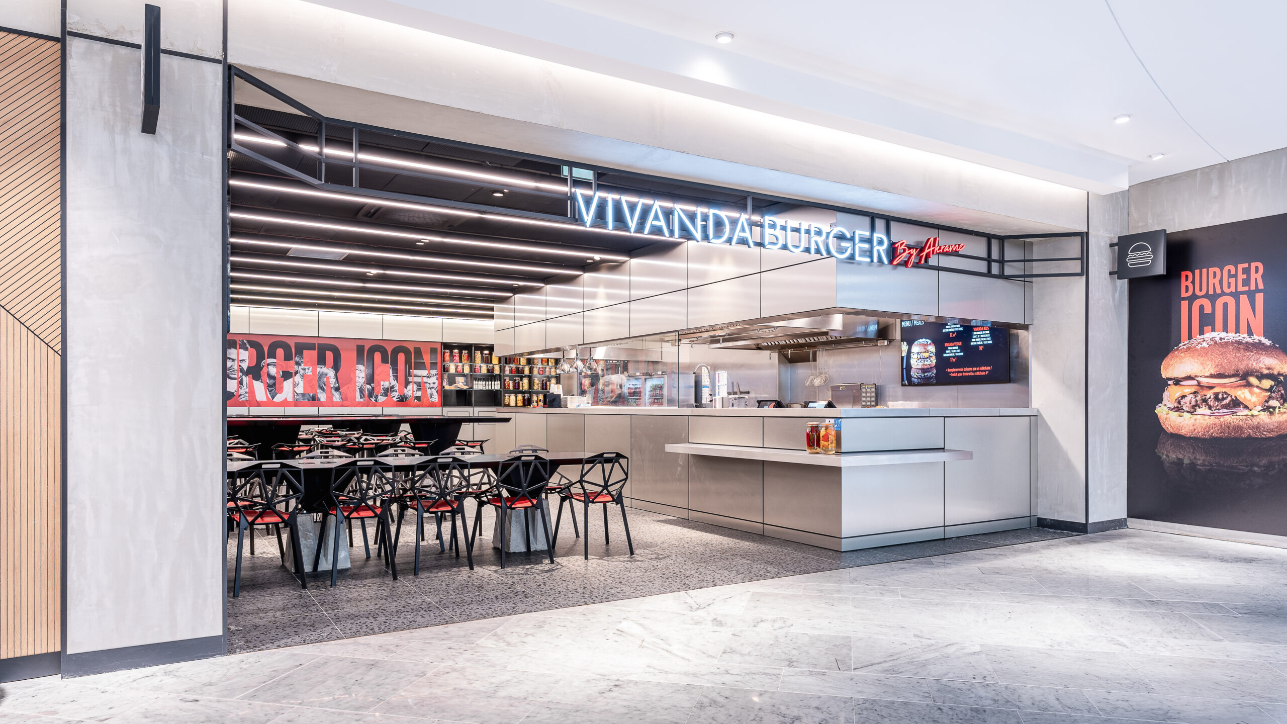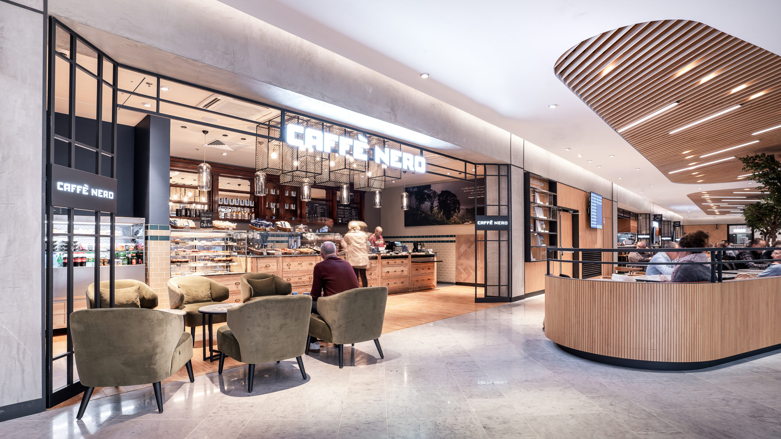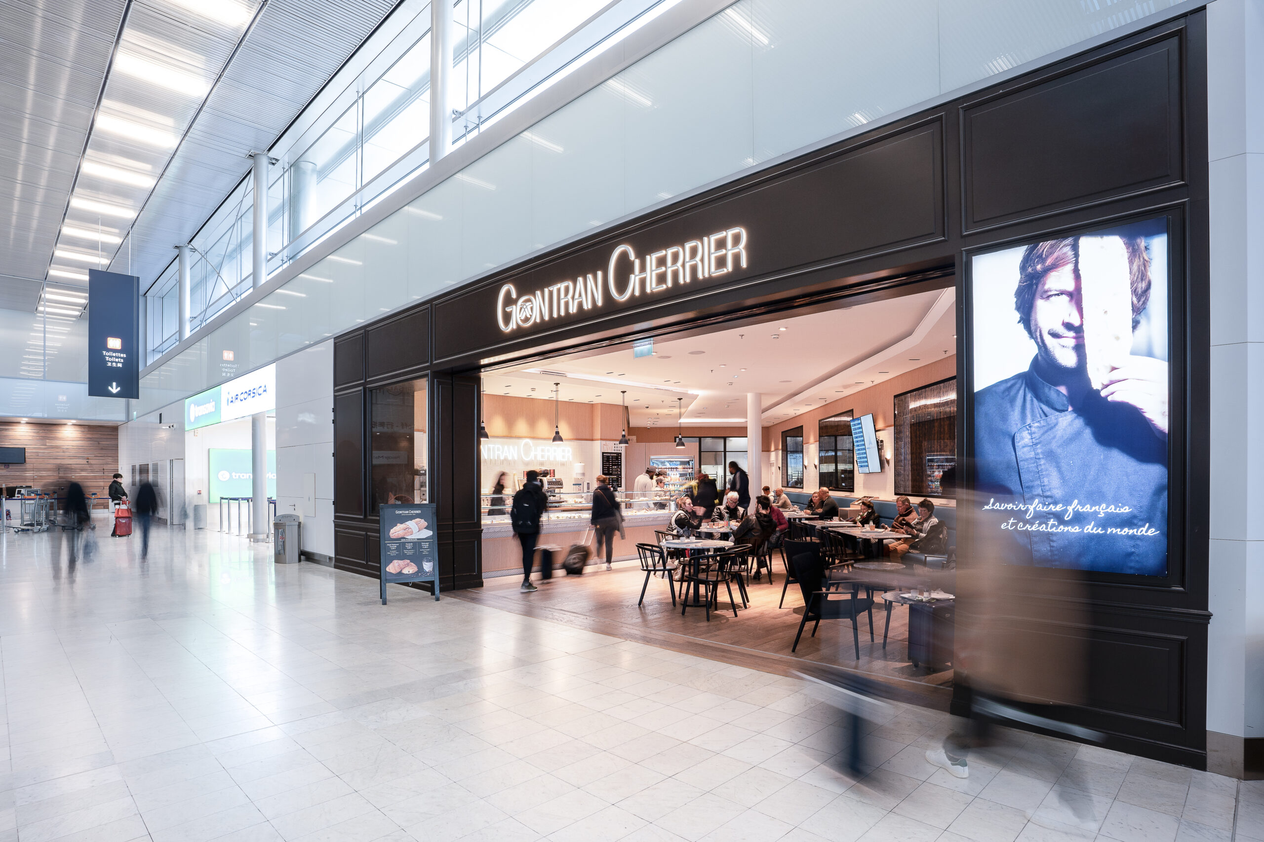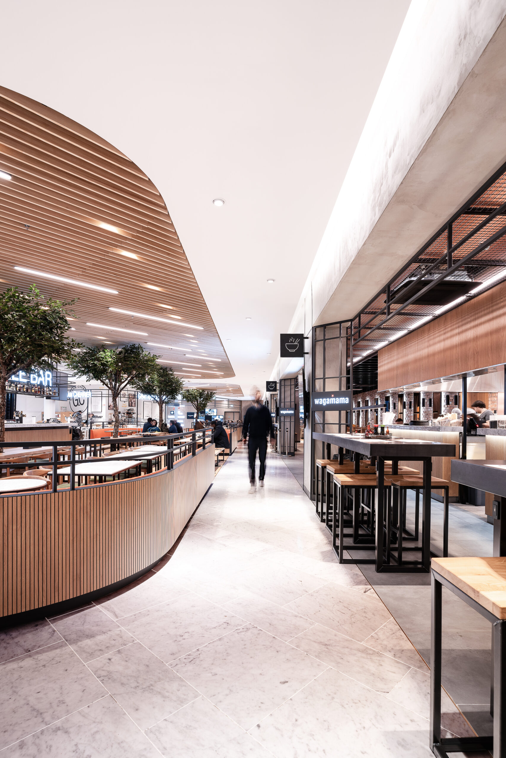 Dans le cadre de la refonte du terminal 3 de l’aéroport d’Orly, nos avons collaboré avec l’Aéroport de Paris, pour faire naître un Foodcourt de 1000m2 en plein cœur du terminal. Un projet d’envergure pour faire cohabiter 5 enseignes food et un bar aux univers très différents et singuliers. La zone de restauration commune porte un concept frais et intemporel, pensé comme un véritable lien entre les différentes enseignes.